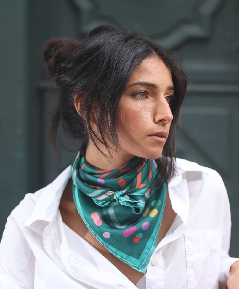 Designed as wearable artworks, these scarves embody a shared vision of creation, boldness, and beauty, and celebrate the power of storytelling.