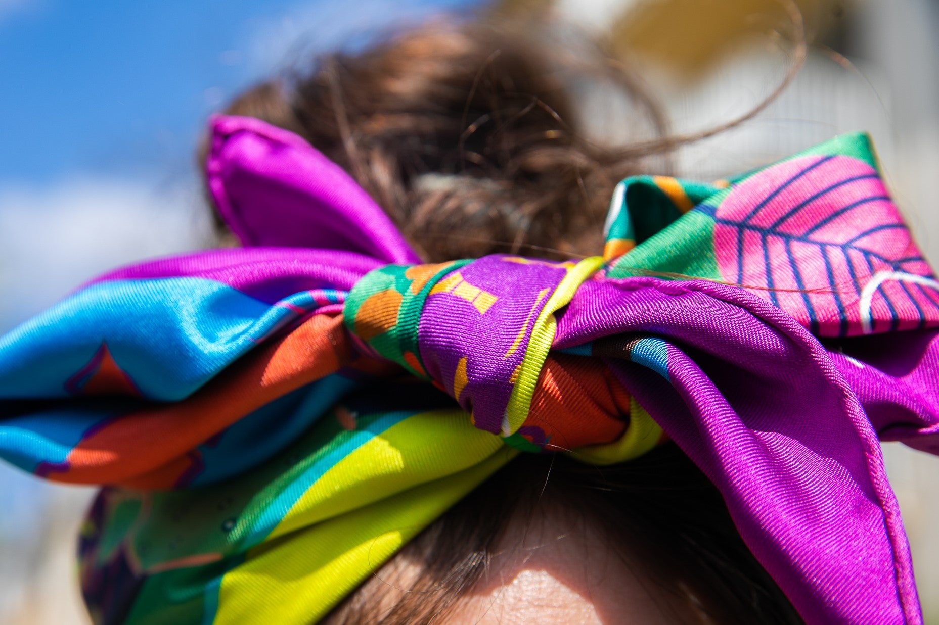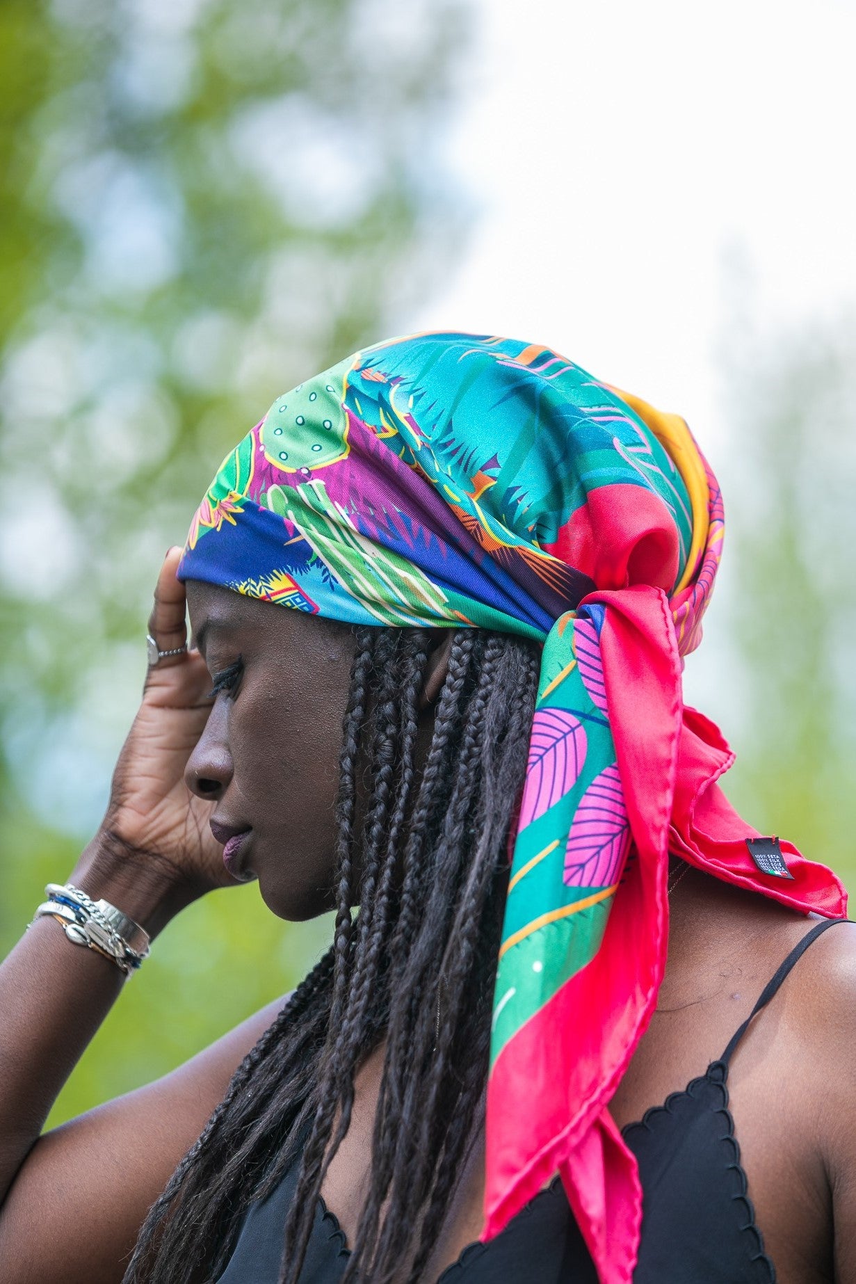 Ce carré de soie représente une villa art déco, un musée de l’histoire Berbère, un magnifique jardin botanique ou lorsque la flore, l’architecture, l’histoire et la culture s’invitent en un même endroit.
