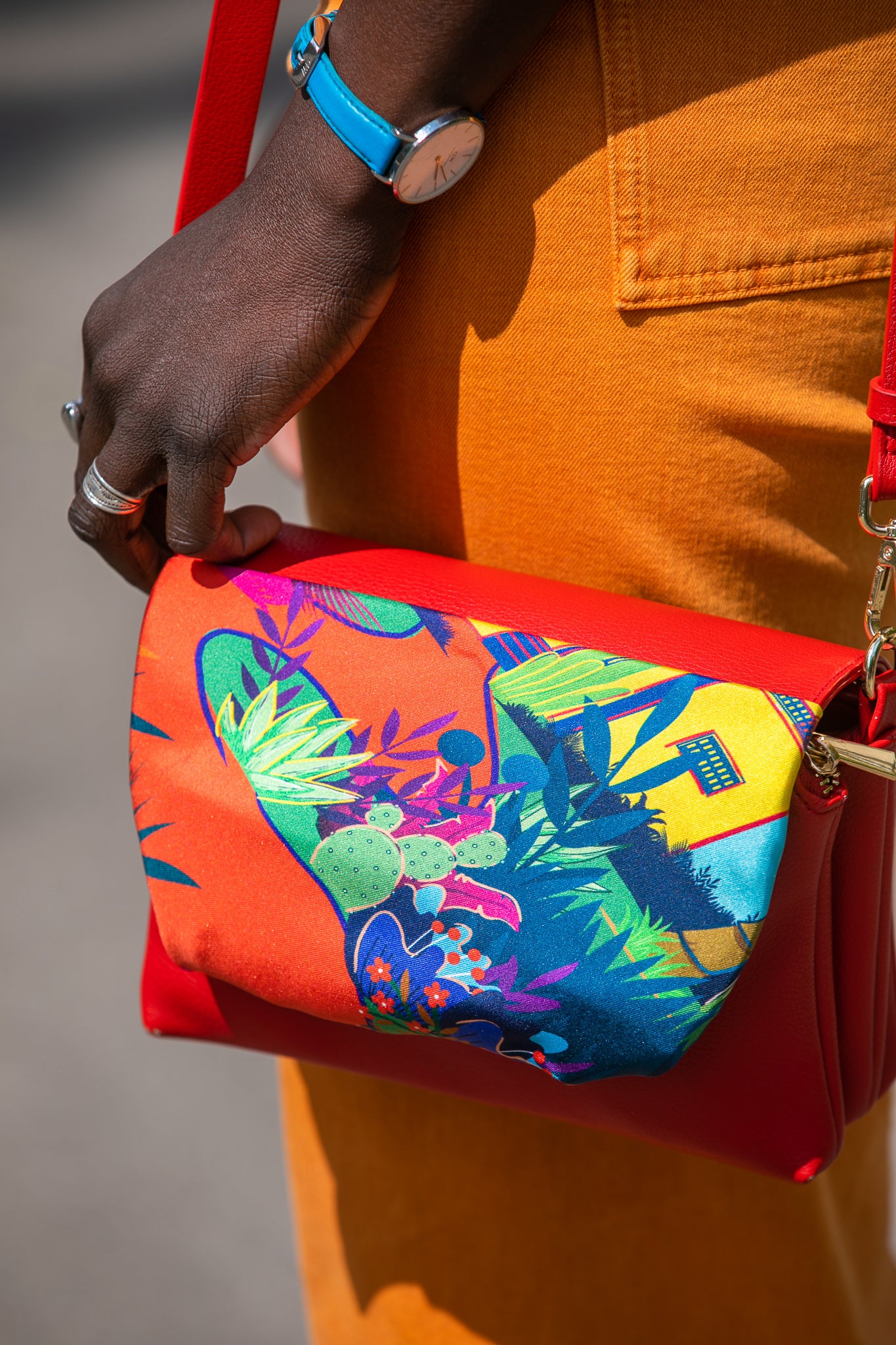 Cette pochette en soie représente une villa art déco, un musée de l’histoire Berbère, un magnifique jardin botanique ou lorsque la flore, l’architecture, l’histoire et la culture s’invitent en un même endroit.
