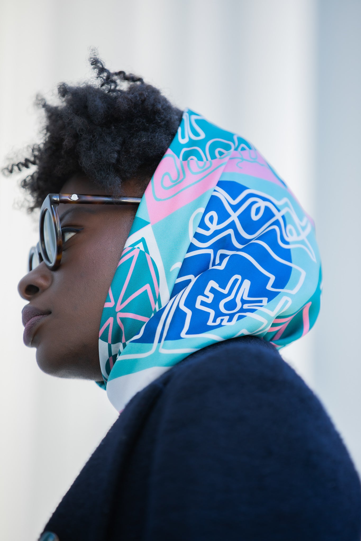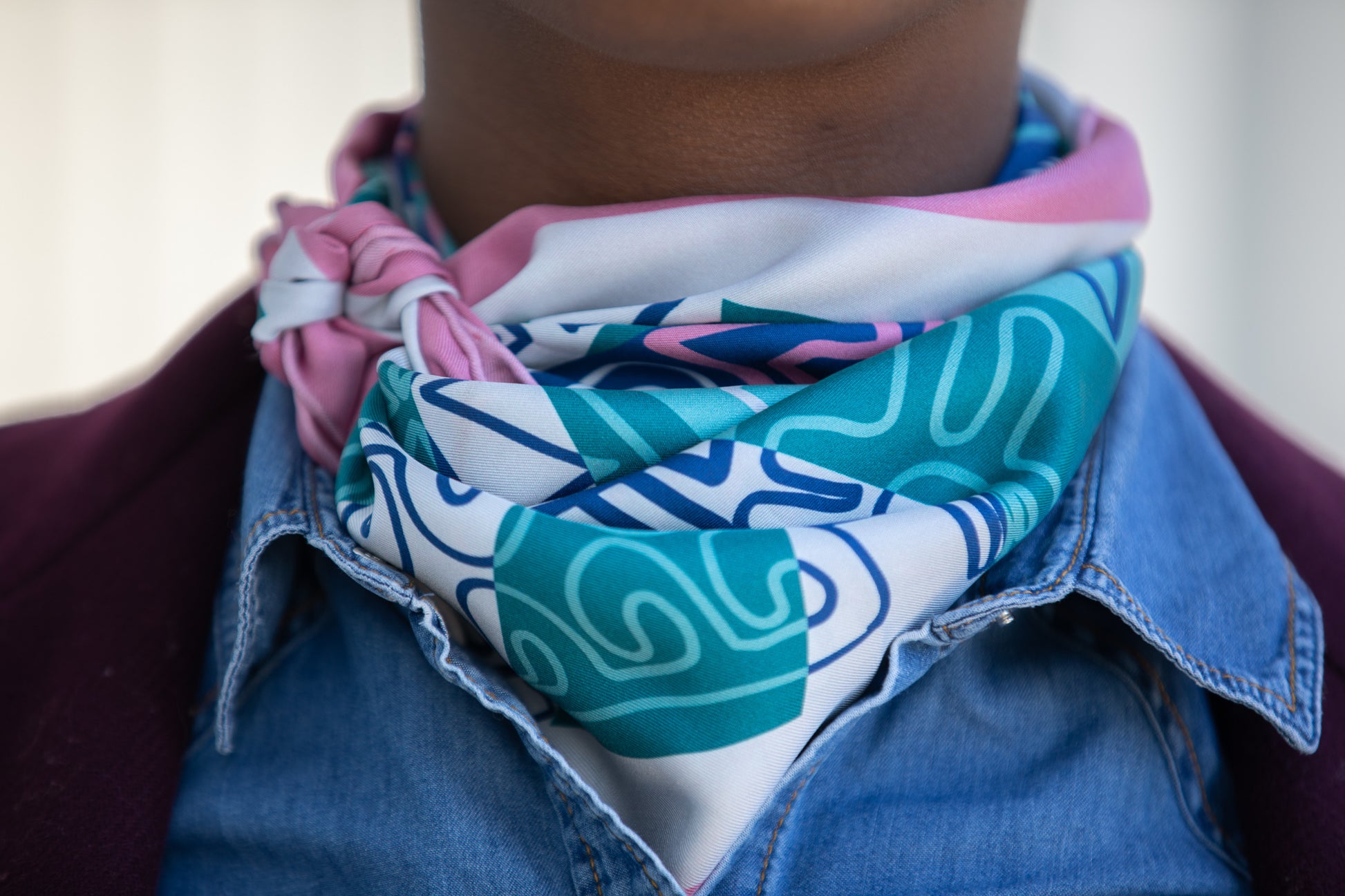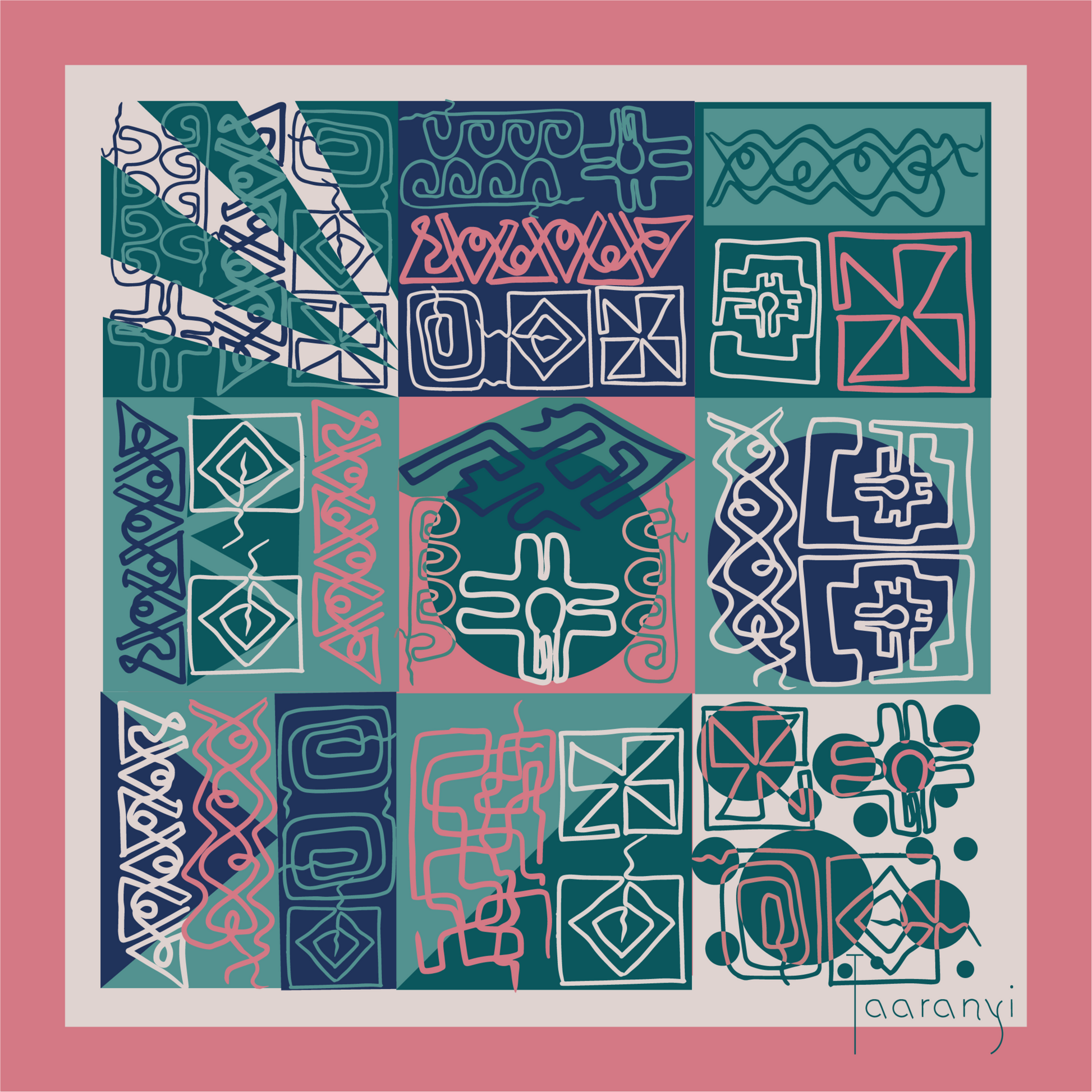 Notre carré de soie « Yemba » est donc une réinterprétation de cette étoffe à laquelle, toutefois y sont repris les codes qui en font un tissu unique.